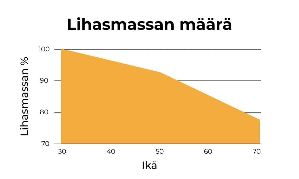 Lihasmassa alkaa vähentyä jo noin 40 vuoden iästä lähtien, jos sitä ei käytetä.