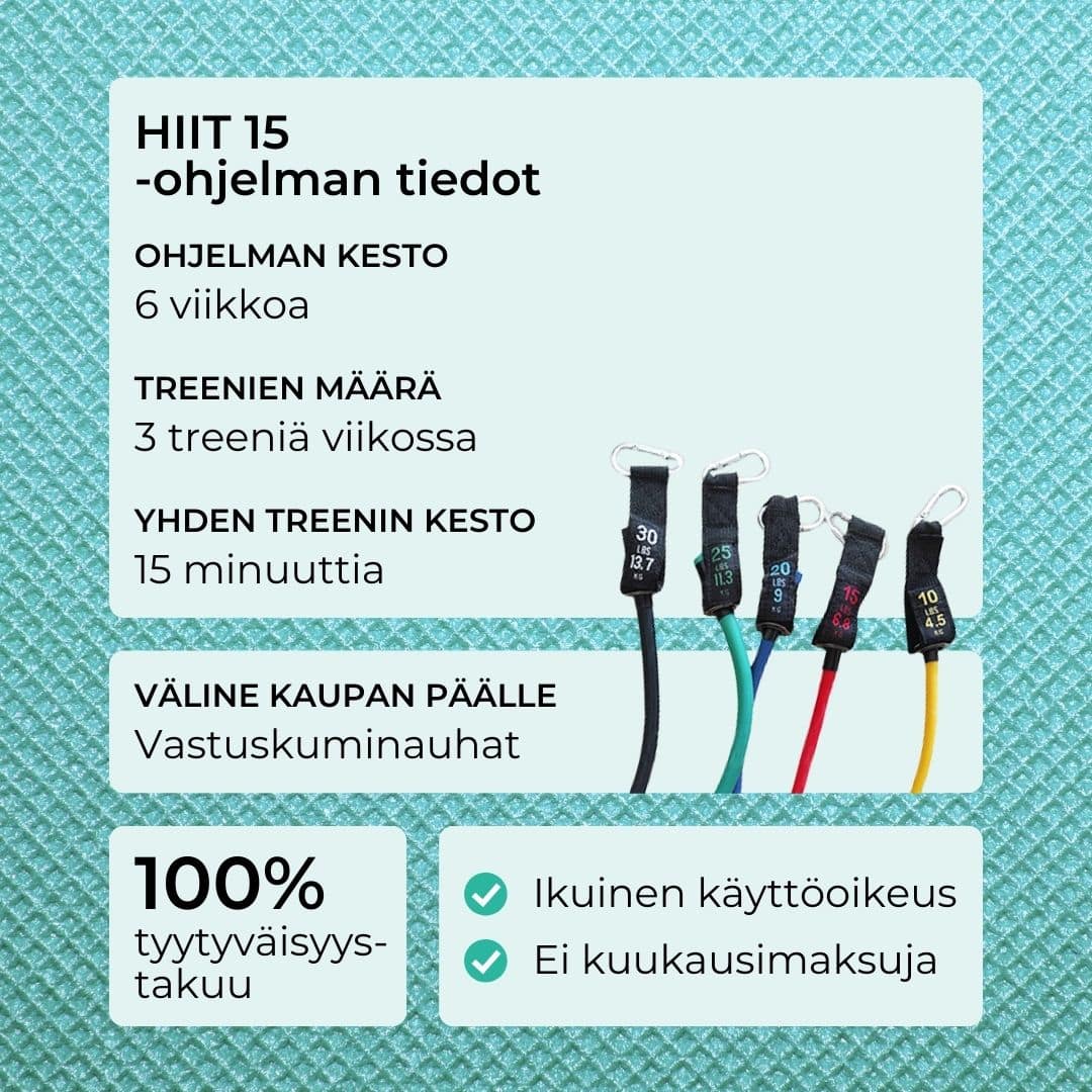 Saat välineet ilmaiseksi kaupan päälle ja voit tehdä niiden avulla HIITt15-treenit missä vain
